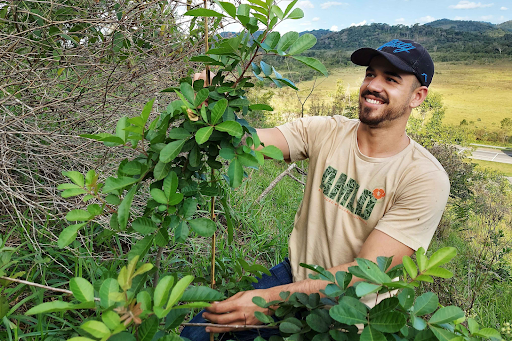 AMLD employee Mateus Nunes monitoring the growth of native-tree seedlings planted a year ago in what will become a forest corridor.